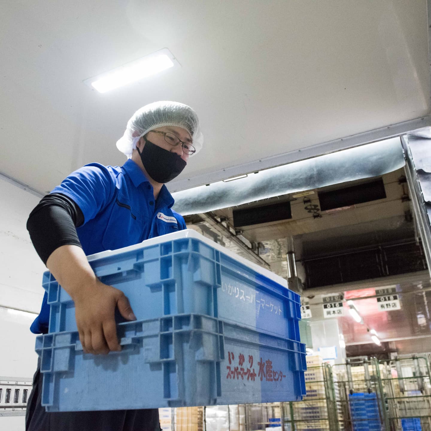 水産物や食料品などを物流センターから京阪神地域の小売店に配送します。
